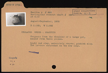 | Description: | Fragment from the shoulder of a large pot, mended form three pieces. The letters scratched in the dry clay. Light red clay, moderatley coarse; pinkish slip. | |