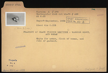 | Description: | Depicts warrior right and woman. White for armor, flesh of woman and fold of garment. | |