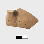 Description:   Start of handle and part of panel between handles. In panel wavy line with dots along edge. Rosette (dots) in angle next to handle. Handle reserved with arcs and tails.