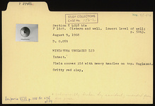 Description:   Intact. Plain convex lid with heavy handle on top.