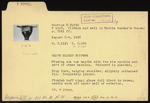| Description: | Missing are one handle with its rim section and part of the other handle. Restored in plaster. Ring foot, bulging shoulder, slightly out-turned lip. Completely glazed. Pinkish-buff clay; glaze dull black to brown, mostly worn off upper half of exterior. Cf. P 27969. | |