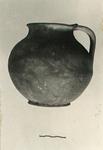 | Description: | Complete except for one missing fragment from neck. Cracked. Flat bottom, globular body, contracted neck, flaring lip, strap handle. Small groove just above onset of handle on shoulder. Gritty brownish-red clay. | |