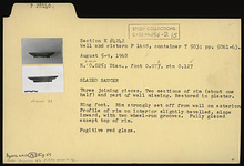 | Description: | Three joining pieces. Two sections of rim (about one-half) and part of wall missing. Restored in plaster. Ring foot. Rim strongly set off from wall on exterior. Profile of rim on interior slightly bevelled, slope inward, with two wheel run grooves. Fully glazed except top of rim. Fugitive red glaze. | |