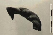| Description: | Handle and rim fragment. Twisted rope handle. Rim flanged within for cover. Triangular projection at lip near handle. Red clay, white bits. | |