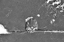 | Description: | Mended from ten pieces; complete except for chips from middle. Shallow plate with high ring foot; thickened and rolled rim. Groove under glaze on outside of wall. On floor: four palmettes within rouletting. Light orange clay. Black glaze, peeling in places. | |