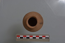 | Description: | Handle and part of rim missing. Round-bottomed, fat body flaring rim. Pinkish-buff clay. | |
