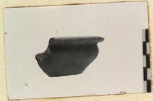 | Description: | Mended. Missing ca. two-thirds of rim. Flat bottom. Out-turned rim. Miniature style. Unglazed. Yellow clay. | |