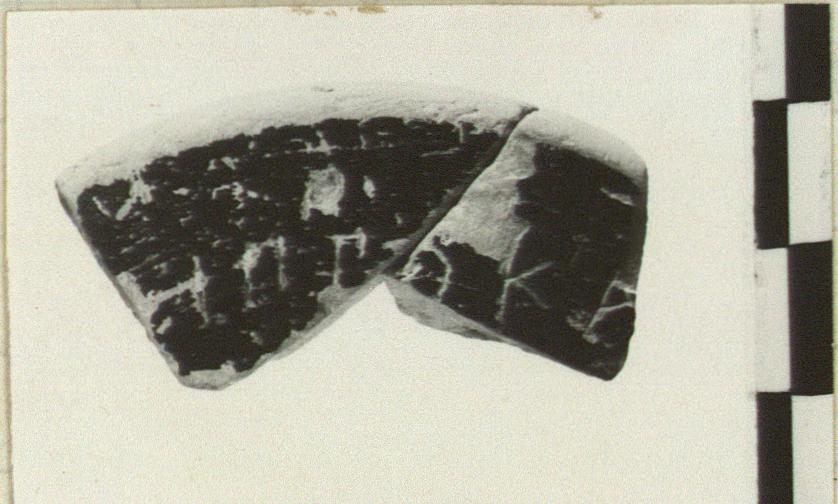 | Description: | Two joining pieces of kylix foot. Flaky black glaze top and bottom; resting area and exterior of foot preserved. Scratched on top surface: ΙΠΠΟΚΡ[ Red clay. | |