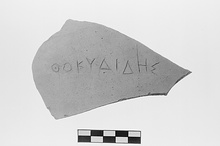 | Title: | Ostrakon of Thoukydides Melesiou (Alopekethen) | |