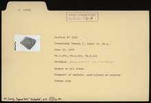Description:   Broken on all sides. Fragment of amphora, semi-glazed on outside.