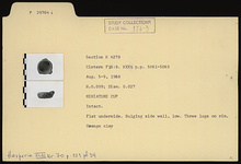 Description:   Intact. Flat underside. Bulging side wall, low. Three lugs on rim.