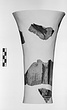 b) Fragment near top of vessel. Man facing left. He is bearded and wears a fillet on his hair. Inside unglazed.