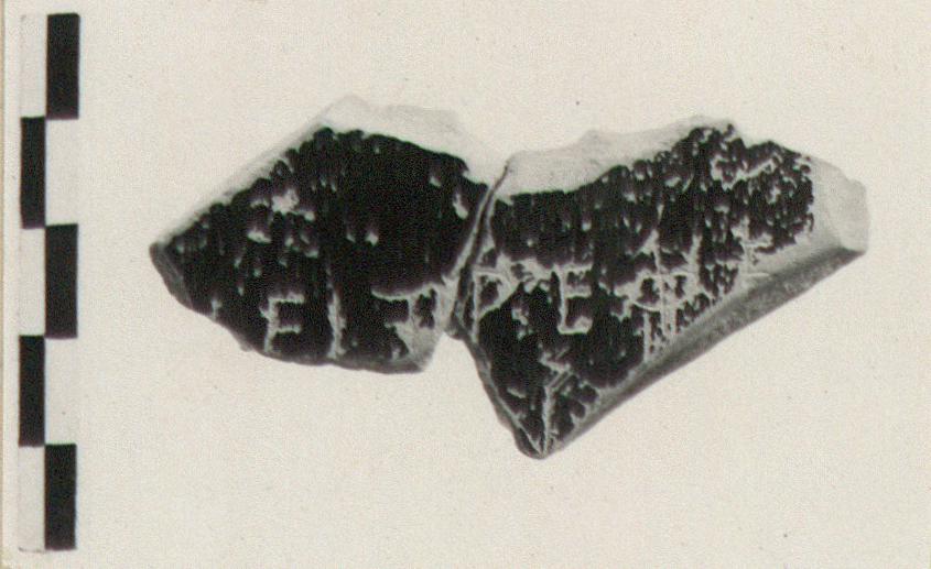 | Description: | Two pieces broken all around. Inscribed diagonally on large closed vessel. Pink clay. | |