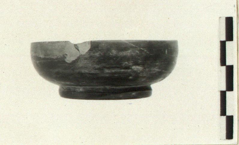 | Description: | Handle and chips of rim missing. Low ring foot, convex sides rising to plain rim. Glazed inside and out. Glaze worn in places, mostly black, fired red on body near handle. Red fabric. Cf. Agora XII, nos. 772-774. Cf. Hesperia 44 (1975), p. 351, n. 33. | |