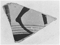 | Description: | Fragment from wall of cup. Legs of male figure. Four lines, black. Interior good black glaze. Attic. ADDENDA Perhaps a satyr. This would explain the red object on the left. | |