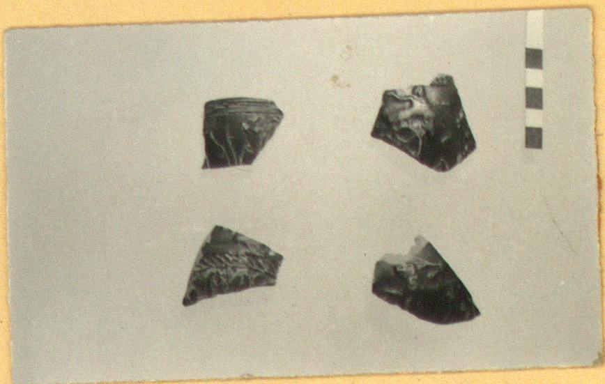 | Description: | Wall fragment. Tendrils with flowers, between lotus petals. Black glaze. | |