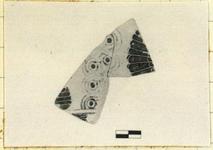 | Description: | Broken on all sides. Some of the glaze has abraded. Parts of two friezes: 1) Bird or siren (tail), to left; vertical guilloche pattern; bird or siren (tail), to right. 2) Head(?) of a figure, to right. No accessory color. Attic. | |