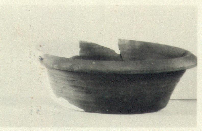 | Description: | The thick flaring rim is turned over and down. Horizontal ribbings on the body. Coarse pinkish clay, unglazed. ADDENDA: Mended an restored; over one-quarter of base and part of wall and rim missing. Flat smooth base, slightly pitted. ADDENDA Cf. P 1973. [JWH, added 6 Oct. 2015] | |