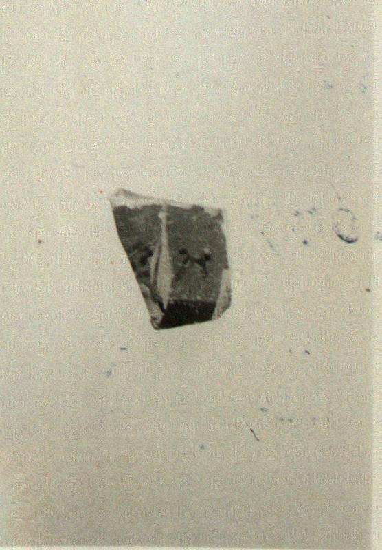 | Description: | From the wall of a large pot, unglazed inside, possibly a panathenaic amphora? To the left, part of a band of black glaze; to the right, two letters: Θ Η, one above the other. Orange wash over the clay outside. | |