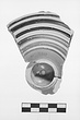 | Description: | a Rim, wall and part of bottom. b) Lower wall and omphalos. Concave rim. Shallow body horizontally ribbed on outside. Omphalos surrounded by reserved ridge on interior. Lowest part of exterior wall plain with omphalos surrounded by reserved band and ridge. Inside entirely glazed shiny black, except for reserved ridge around omphalos. On outside, rim and alternate grooves of body glazed. Black glaze on upper body, red on lower body. | |