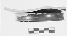 Description:   Half of foot, part of lower wall. Convex-concave shape. Ring foot runs into lower wall. Rounded resting surface. Totally glazed.