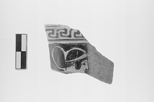 | Description: | Single fragment from the body. Head of woman in profile to the right. Running maeander above the picture field. | |