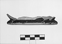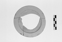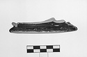 | Description: | Base and lower wall. Center of floor missing. Ring base with flat resting surface. Underside reserved and miltosed. Resting surface reserved. Shiny brownish-black glaze outside, unglazed inside. | |