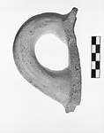 | Description: | Handle and part of neck, broken all around. Lower body concave, widening out at bottom. Wall angles in at point of upper handle attachment. Thick handle, round in section. Hard gritty clay with abundant fine mica, larger black, red, and white inclusions. Light red (2.5YR 6/6) with pink, perhaps slipped surface (7.5YR 7/4). | |