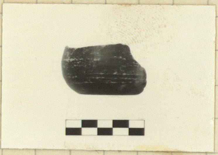 | Description: | Part of lower wall and underside. Flat underside. Greatest diameter just above bottom. Finger marks on lower body. Shiny brown glaze outside and upper inside. | |