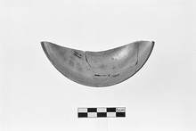 | Description: | One side of body (= 4 sherds). Rounded bowl; fine grooves on inside at lip and around floor. Orange-red ware and gloss, darkened and flaking on upper exterior (from stacking). Eastern Sigillata B'. | |