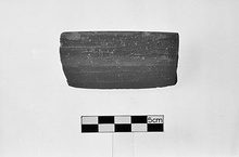 Description:   Rectangular rim fragment. Rounded wall with plain rim, flattened on top.