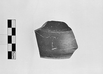 | Description: | Rim to wall fragment. Carinated form, rather small, with sloping wall and plain rim (copying Italian Terra Sigillata shape). Light yellow-brown clay; red slip, smooth and glossy on outside, duller and brushed on inside. Darker band of slip at top. Eastern Sigillata A. | |