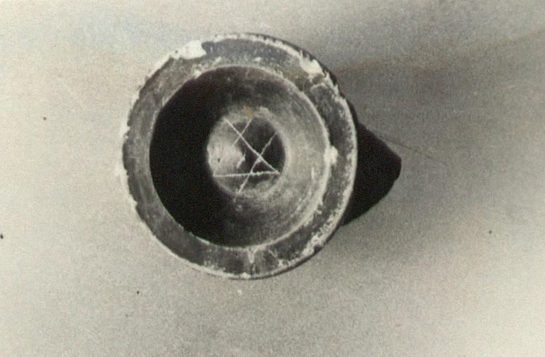 | Description: | Base of a small bowl. Graffito within ring foot: <graphic> Yellow clay; red glaze. Pergamene Ware. | |