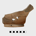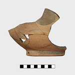 | Description: | Eleven joining fragments preserving most of base and part of lower wall of amphora, distorted out of shape and slightly vitrified due to misfiring. Vessel in part damaged by contact with another vessel in kiln. Horizontal band at foot. AS 871. | |