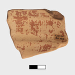 | Description: | Single fragment preserving portion of test piece, including one edge indicated by glaze (paint). Piece cut from the body and handle either of a large belly-handled amphora or krater (the former perhaps more likely?). Paint on interior and exterior thickly applied, much worn and with a tendency to flake; fired red. Interior probably decorated with vertically and horizontally intersecting lines. Traces of paint on exterior, including preserved edge. Clay body and reserved surfaces evenly fired close to reddish-yellow and pink 7.5YR 7/6-7/4. Cf. P 32375-P 32376. | |