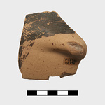 | Description: | Single fragment preserving portion of test piece, including one edge. Piece cut from lower body, including handle attachment, of skyphos rather than belly-handled amphora or hydria. Paint on interior, exterior and edge evenly fired black. Interior painted solidly; broad sweep of paint on exterior. Clay body and reserved surfaces evenly fired close to pink 7.5YR 7/4. | |