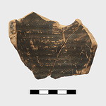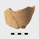 | Description: | Five joining fragments preserving large part of test piece, including three edges and almost half of draw hole. Piece cut from neck of closed pot, probably amphora. Paint on interior and edges thickly applied, fired black. Interior painted solidly; exterior reserved. Piece optimally fired. Clay body and reserved surfaces fired close to pink 7.5YR 7/4-8/4. For shape cf. P 32365 and P 32366. | |