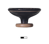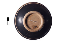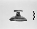 Description:   Intact. Rounded disk foot, recessed on underside. Open bowl with thickened lip, scratched groove at juncture of body and rim on outside. Two fine scratched grooves on foot. Reserved: underside, resting surface, and outside of foot.