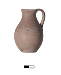 | Description: | Intact except for chip from rim. Flat base, strap handle. Peeling glaze in band around body at base of handle, on handle, inside rim. Cf. Agora XII, nos. 255-261, ca. 500 B.C. | |
