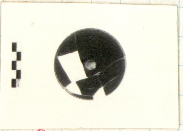 | Description: | Six joining fragments preserving three-quarters of lid. Flat top, downturned rim slightly concave on outside, small loop handle, reserved. Also reserved, interior and resting surface. Lid for a psykter (KM 2/99). Cf. Agora XII, no. 44, ca. 500-480 B.C. | |
