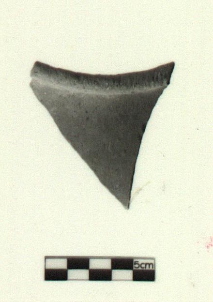 | Description: | Four fragments, three joining, preserving about one-third of chytra: part of rim and upper body, with one handle; one loose rim fragment. Spherical body, rounded shoulder, flaring out-turned rim with flat lip. Horizontal handles at junction of shoulder and body, round in section. Wide horizontal bands in red slip at upper shoulder, two preserved on body. Two horizontal grooves at level of handle attachment. Coarse orange-buff clay with white, yellow, gray and mica inclusions. Finished smoother on exterior. | |