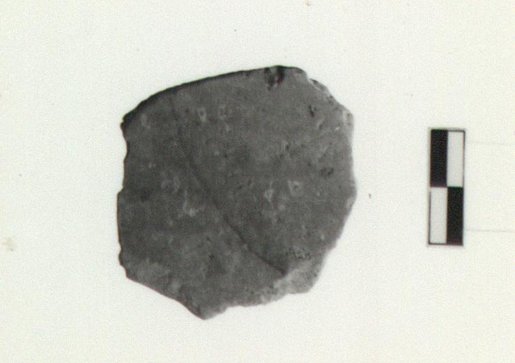 | Description: | Intact. Roughly circular clay chipped disk "counter", cut from body of large closed vessel. No preserved decoration. Clay pink 7.5YR 7/4. | |