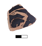 | Description: | Single fragment broken all around. Preserves part of tondo with head of a male to right. Left arm raised above head with hand touching reserved border of tondo. Reserved zone around hair. Relief line: contour, facial details. Added red: fillet around head, inscription. Inscription beginning above head. Fine red clay. Good black glaze on exterior. | |