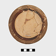 | Description: | Mended from many fragments preserving almost complete vessel, with single small lid fragment. Well preserved paint fired reddish brown. "Flat pyxis" of MG I type, with "vigorously curved profile". Inset rim, with corresponding pairs of suspension holes. Top of rim painted solid. Interior and underside of foot reserved. Exterior decoration: broad band above base, above which body divided into two sets of horizontal bands (seven below, five on top), with double zigzag pattern between at shoulder level. Lid fragment decorated with reserved bands, with reserved underside. Pinkish buff clay with large inclusions. Middle Geometric I. See Kerameikos V.I, no. 262 (= Coldstream (1968), pl. 3f); and generally Coldstream, p. 17. Ca. 800 B.C. ADDENDA: One joining body fragment added from Lot ΜΣ 508, not mended (Dec. 2020). ADDENDA:This fragment now is recorded as P 38588, because according to Bartek Lis they do not belong together (March 2022). | |