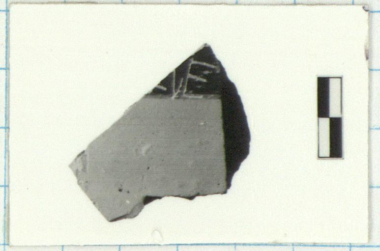 | Description: | Single fragment preserving wall of open vessel, broken all around. Thick-walled, with red-brown glaze inside. Dark brown glazed zone outside on which is incised name of Themistokles, preserving parts of three letters: <graphic> Orange fabric, lighter slip on exterior. Joins P 32951 and P 32556 . | |