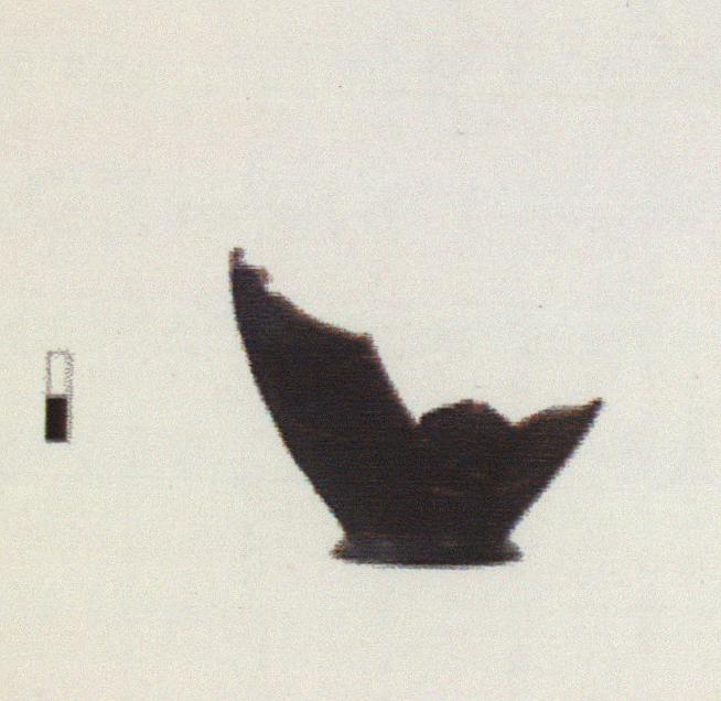 | Description: | Mended from many fragments, preserving entire foot and part of wall. Flaring ring foot, reserved circle with miltos on underside. Orange-buff fabric, black glaze. b) Joined piece not mended. Cf. Agora XII, nos. 322, 324, ca. 400 B.C. | |