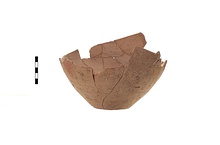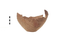 | Description: | Upper half missing. Mended from many fragments. Surface pitted. Trace of orange-brown slip (wash) on one side. Broad biconical body, small convex base. Orange sandy fabric with numerous lime inclusions. (cf. shape: FM 136?) Addenda July 2024: Several fragments added from Lot ΒΕ 2401. Fine light brown (7.5YR 6/4) micaceous fabric with rare medium rounded calcareous inclusions. LH II–IIIA. | |