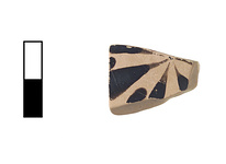 | Description: | Single fragment of floor, broken all around. Surface worn. Interior: reserved with black glaze circle and central circle and dot. Underside slightly convex; reserved with radiating leaves and tongues between. Fine powdery clay; dull black glaze. | |