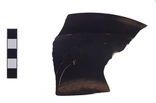 Description:   Single fragment of rim and bowl. Glaze worn on top of rim.