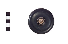 | Description: | Single fragment preserving bottom of mug, with wall broken away. Edges chipped. Underside moulded with rounded cushion at edge and sharp aris closer to center. Groove and trace of reserve zone at base of wall. Interior surface with slight nipple. Excellent black glaze on interior and exterior. Reserved circle on underside with black glazed circle and dot at center, scraped groove outside aris moulding. Fine orange clay. Cf. P 15919 (Agora XII, no. 190). Related to P 33254, P 33255 and P 33256. | |